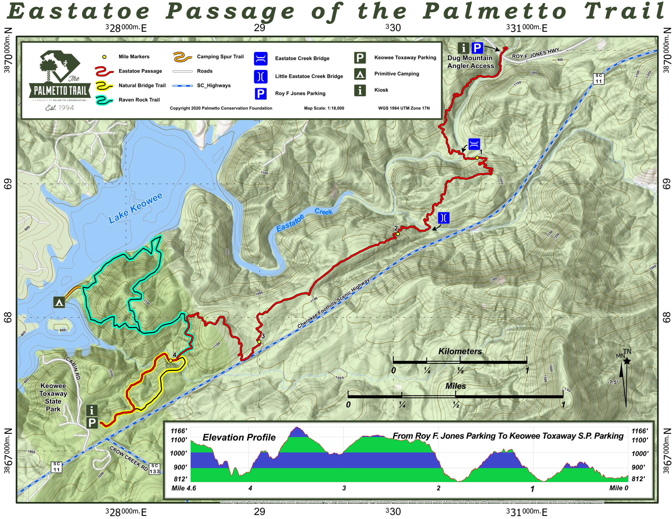 Trailheads are located at Keowee-Toxaway State Park and Dug Mountain Fishing Access