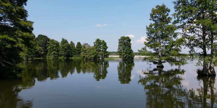 Scenic and popular Lake Moultrie Passage begins in the Francis Marion National Forest, then hugs the eastern and northern shores of 60,000-acre Lake Moultrie. The panoramic views are spectacular. Much of the Passage shares Santee-Cooper’s service roads on the lake’s earthen levees, which makes the trail a favorite with mountain bikers. From the Hwy 52 trailhead, a short hike through pine forest opens to the Pinopolis East Dike, a perfect place for admiring sunsets. After a walk through Bonneau Beach, the trail continues along the north-shore dike system until it crosses historic Santee Canal, last used in the 1850’s. The last few miles pass through a mature hardwood and pine forest that includes fascinating swamp terrain around Bulltown Bay. Other points of interest along the Passage include the SC Department of Natural Resources Bonneau Fish Hatchery and Hatchery Wildlife Management Area, and the Rediversion Canal, meant to solve several problems created by the original diversion of Santee River water into the Cooper River. There are boat launches at Bonneau Beach and at the Rediversion Canal between mile markers 12 and 13 , and canoe/kayak launches between mile markers 8 and 9 and by the bridge between mile markers 22 and 23. The Sandy Beach Spur Trail, open March 3 - November 15 takes you to a spit of land jutting into the lake, with primitive camping available. Additional primitive camping is half a mile past the Rt. 52 trailhead, down a service road near mile post 9, and near mile post 18. Note that there is no potable water available at any of the primitive campsites, so be sure to bring enough with you.